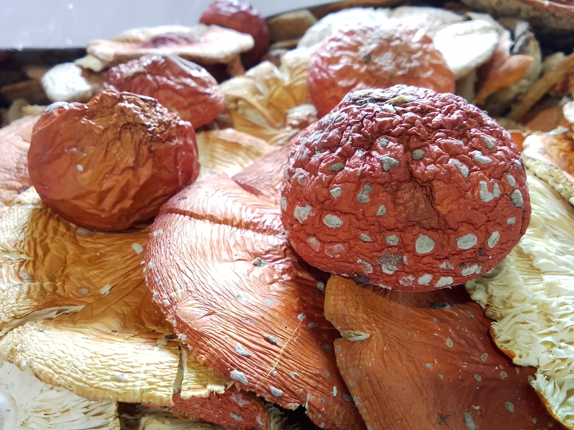 Сухие мухоморы, и красные и пантерные, теряют в весе примерно в 10-11 раз относительно сырых.